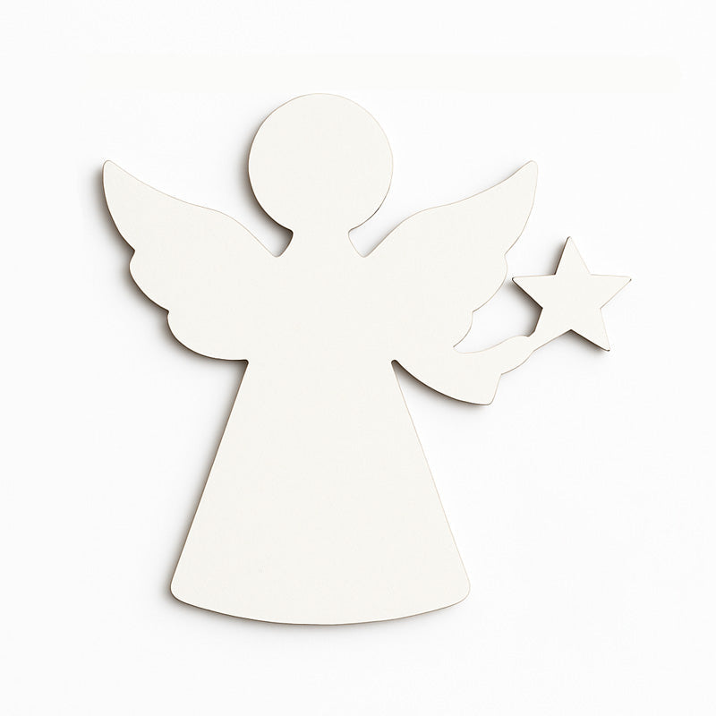 Set de 10 blankuri Inger cu stea Craciun, realizate din MDF de 3mm, ideale pentru decorarea bradului, proiecte DIY si personalizare. Dimensiunile disponibile sunt 6 cm, 10 cm si 12 cm. Pot exista mici abateri de dimensiune datorita formei decupate. Produs rezistent si versatil, potrivit pentru vopsire, gravare sau aplicare de accesorii.