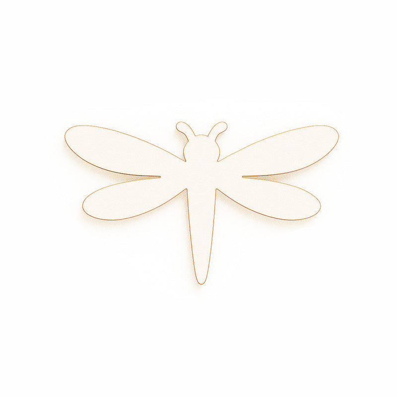 Blank MDF 3mm – Libelula. Alb pe o parte si natur pe cealalta. Disponibil in 3 dimensiuni: 6 cm, 10 cm si 12 cm. Posibile abateri minore datorate procesului de debitare laser. Ideal pentru proiecte DIY, decoratiuni si gravura.