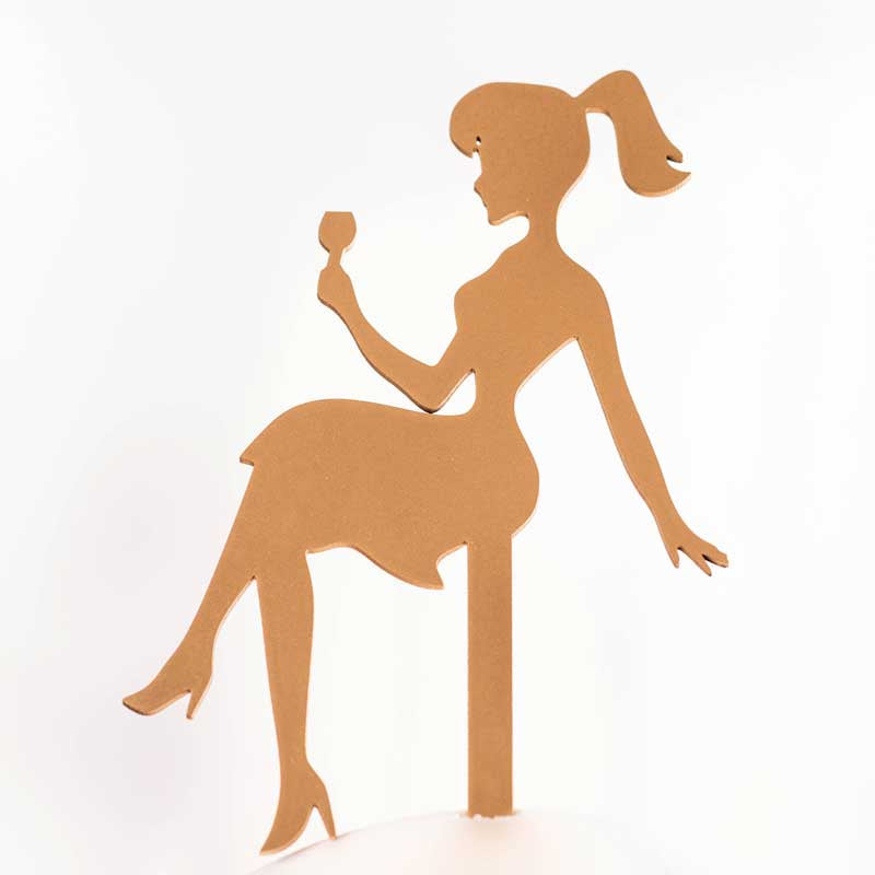 Cake topper-ul cu silueta unei femei este un decor elegant și stilat, ideal pentru a completa aspectul unui tort sau a unei prăjituri la diverse evenimente speciale precum nunți, petreceri de burlăcițe, aniversări sau alte ocazii festive. Realizat din materiale de calitate, acest cake topper adaugă un plus de eleganță și rafinament desertului dumneavoastră, evidențiind importanța și celebrarea persoanei sau momentului sărbătorit.