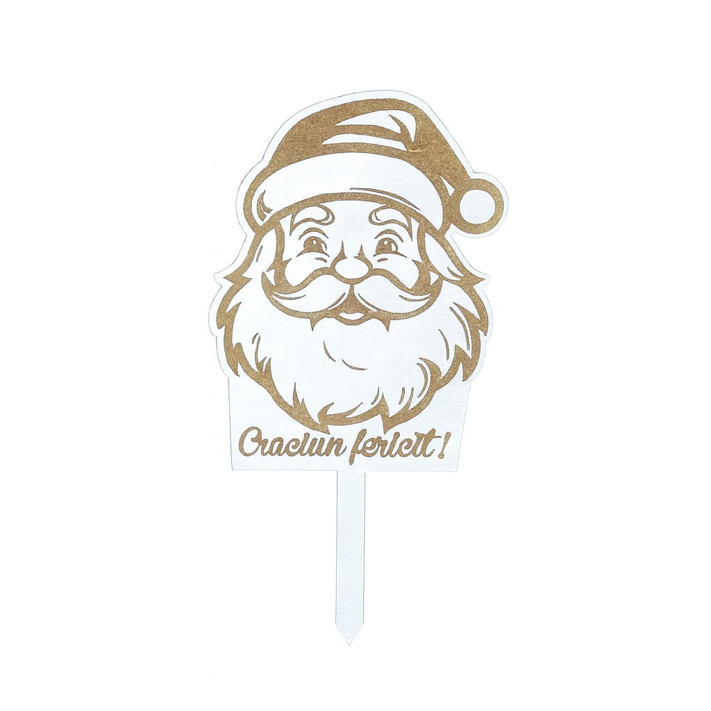 Topper cu Moș Crăciun gravat, perfect pentru torturile tematice de Crăciun și decorurile de sezon.