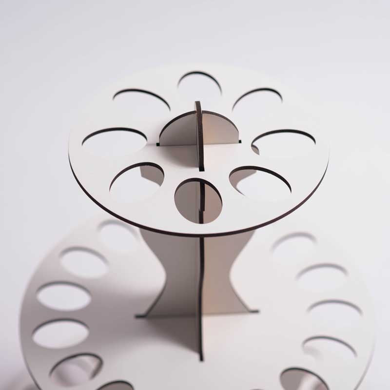 Un suport elegant și practic pentru macarons, perfect pentru a fi folosit în decorarea unui candy bar la evenimente speciale sau în cofetării. Fabricat din material rezistent și ușor de curățat, acest suport are un design atrăgător ce permite expunerea delicată a macarons-urilor, oferindu-le o prezentare impresionantă și invitând clienții să se bucure de aceste delicatese rafinate.